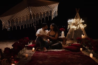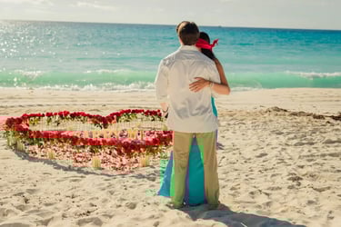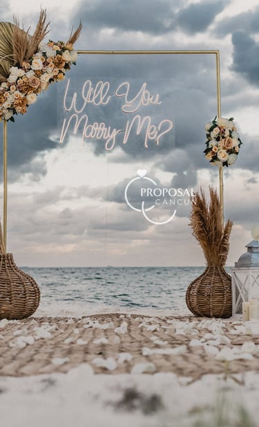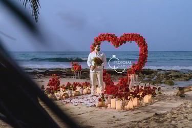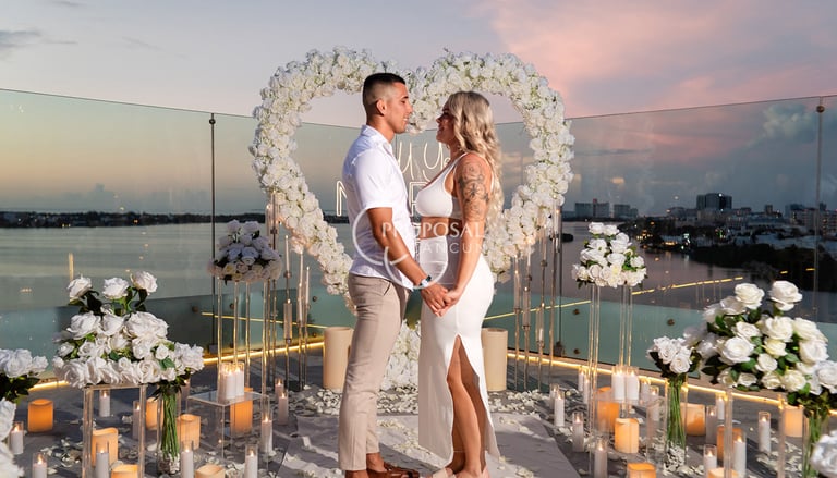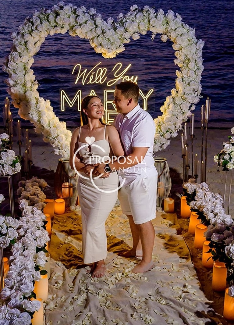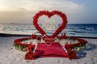 El principal símbolo del amor del mundo, proponle matrimonio con un gran corazón de rosas de 2 metros de altura, con un gran neón led, camino de rosas, pétalos de rosa y muchas velas.